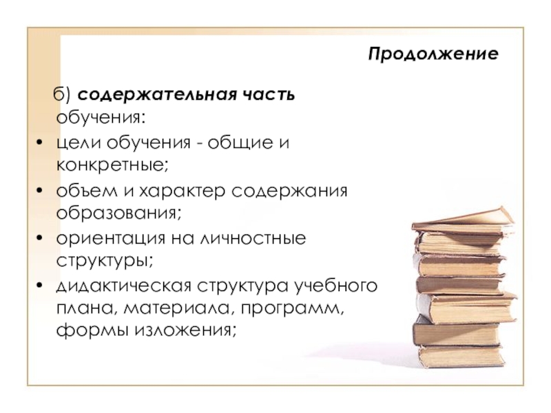б) содержательная часть обучения: