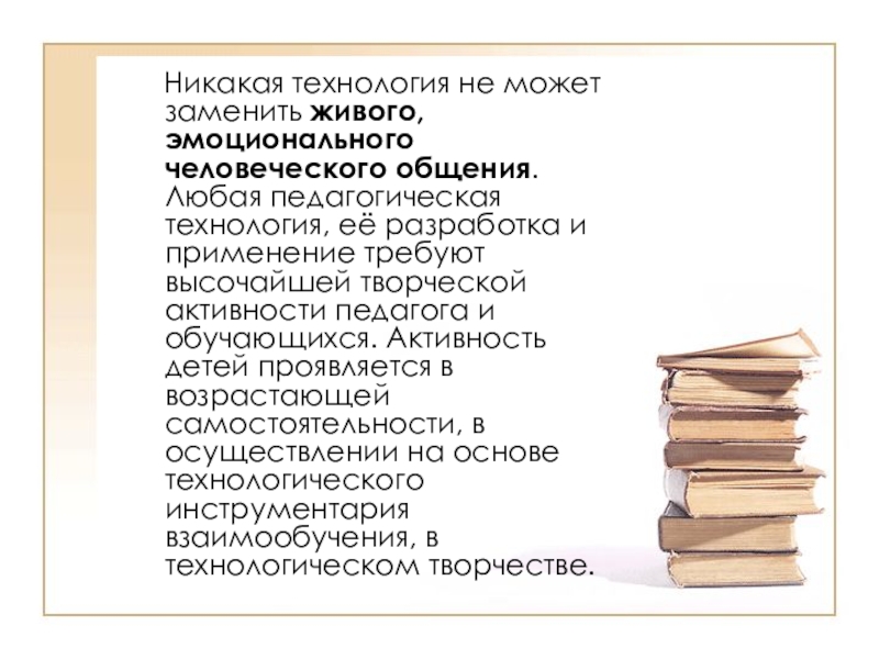 Слайд 25 Никакая технология не может заменить живого, эмоционального человеческого общения.