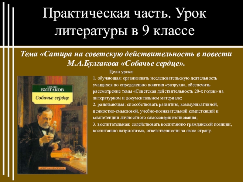 Слайд 15Практическая часть. Урок литературы в 9 классе