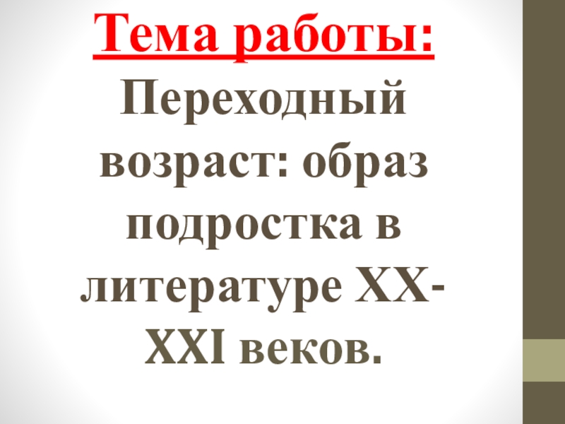 Слайд 3Тема работы: Переходный возраст: образ подростка в литературе ХХ- XXI веков.