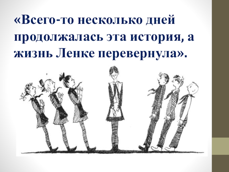 Слайд 18«Всего-то несколько дней продолжалась эта история, а жизнь Ленке перевернула».
