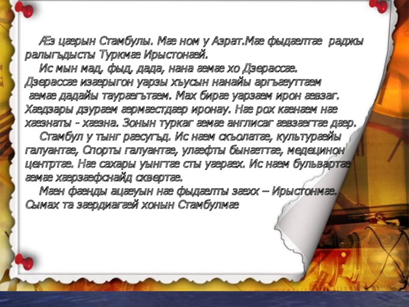 Мæ фыдæлтæ раджы ралыгъдысты Туркмæ Ирыстонæй.