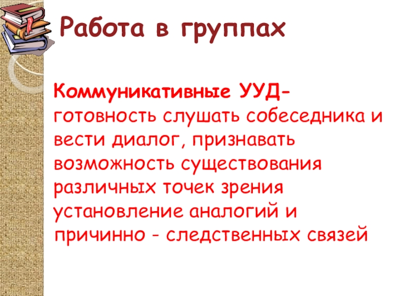 Коммуникативные УУД- готовность слушать собеседника и вести диалог,