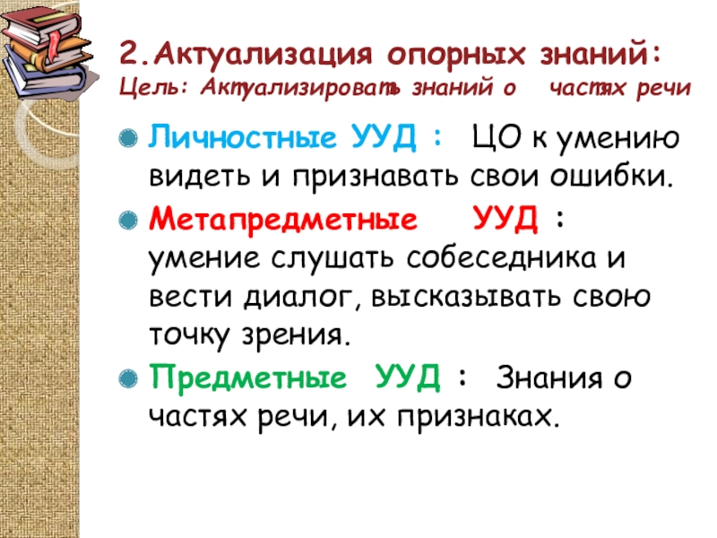 Предметные УУД : понятия о частях речи, их постоянных и непостоянных признаках.