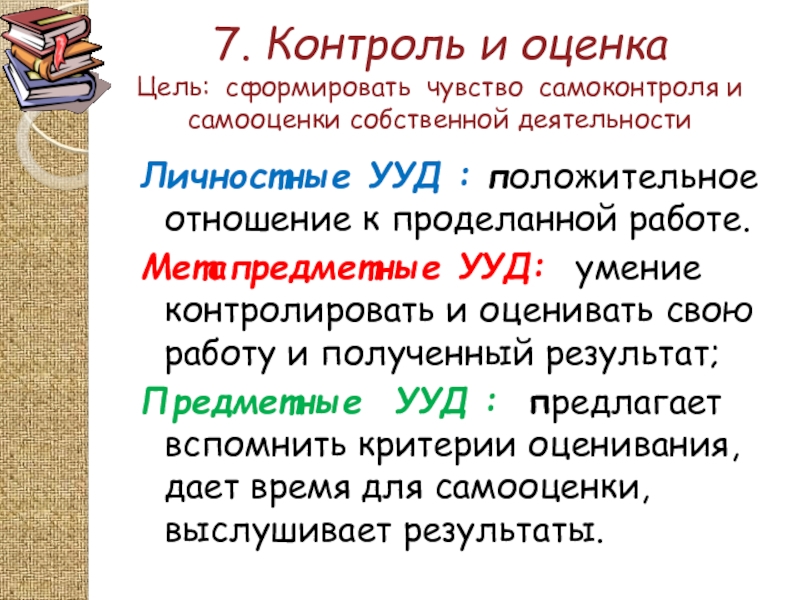 Метапредметные УУД: умение контролировать и оценивать свою работу и полученный результат;
