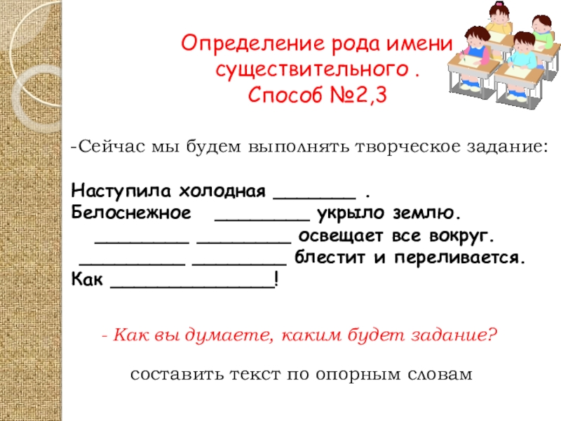 Слайд 29-Какое слово вам подсказало в каком роде должно быть имя существительное?