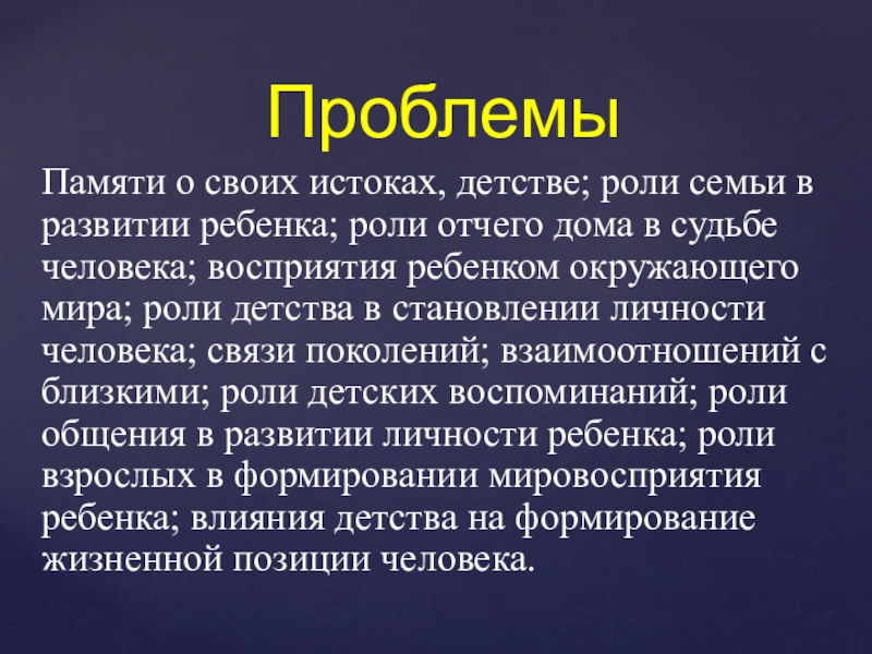 Памяти о своих истоках, детстве; роли семьи в развитии ребенка; роли