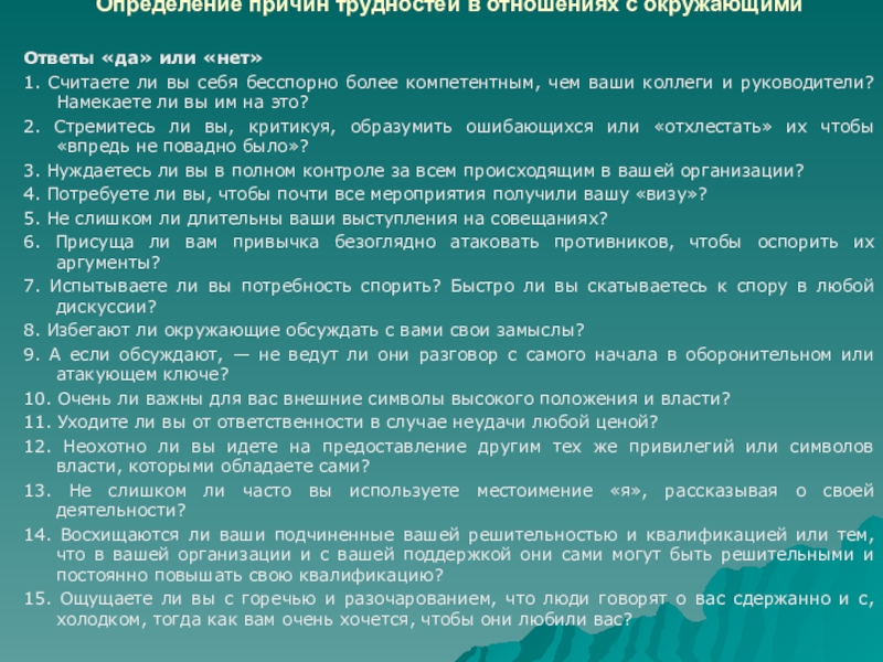 Слайд 31Определение причин трудностей в отношениях с окружающими