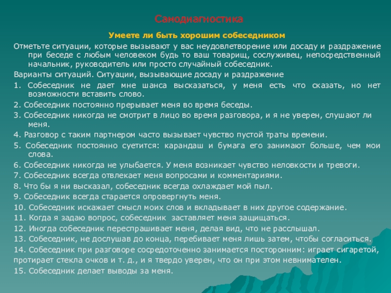 или досаду и раздражение при беседе с любым человеком будь то ваш товарищ, сослуживец, непосредственный начальник, руководитель или просто случайный собеседник.