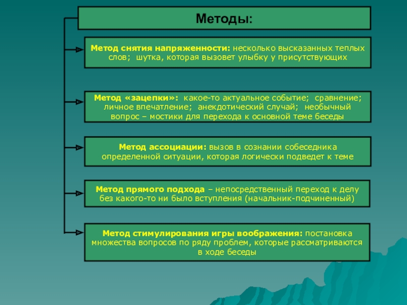 11. Вступительные – позволяющие заинтересовать партнера, расположить к себе, могут содержать указание на возможное решение проблем партнера: «На вашем предприятии ежедневно наблюдаются простои… Вы позволите мне предложить решение этой проблемы?»;