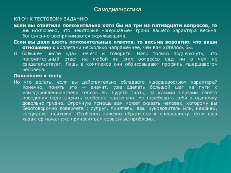 из пятнадцати вопросов, то не исключено, что некоторые «шершавые» грани вашего характера весьма болезненно воспринимаются окружающими.