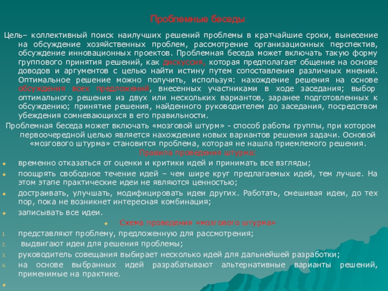 2. Необходимость выработки руководителем соответствующих решений на основании анализа мнений и высказываний сотрудников.