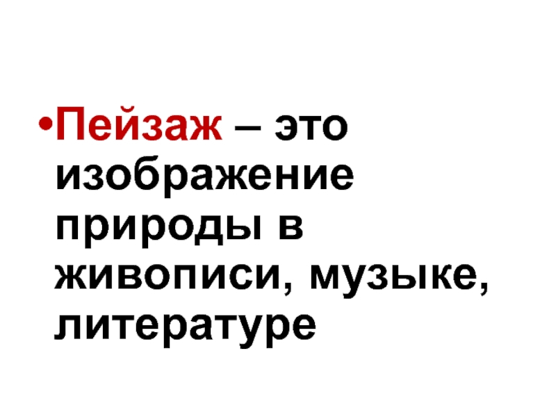 Слайд 4Пейзаж – это изображение природы в живописи, музыке, литературе