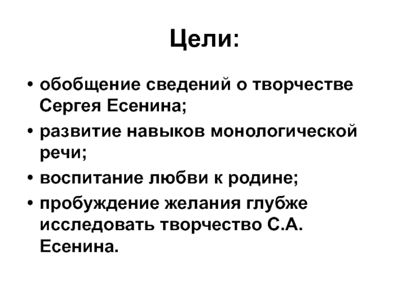 пробуждение желания глубже исследовать творчество С.А.Есенина.