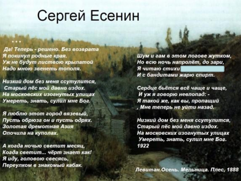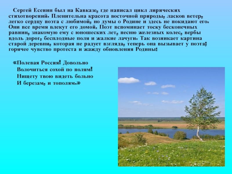 Слайд 14Сергей Есенин был на Кавказе, где написал цикл лирических стихотворений. Пленительна