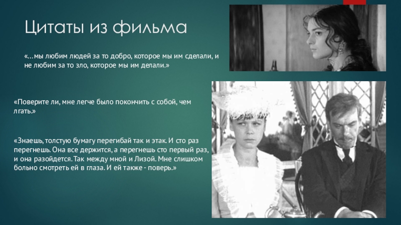 «Знаешь, толстую бумагу перегибай так и этак. И сто раз перегнешь. Она все держится, а перегнешь сто первый раз, и она разойдется. Так между мной и Лизой. Мне слишком больно смотреть ей в глаза. И ей также - поверь.»