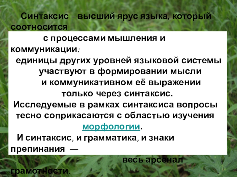 Синтаксис – высший ярус языка, который соотносится