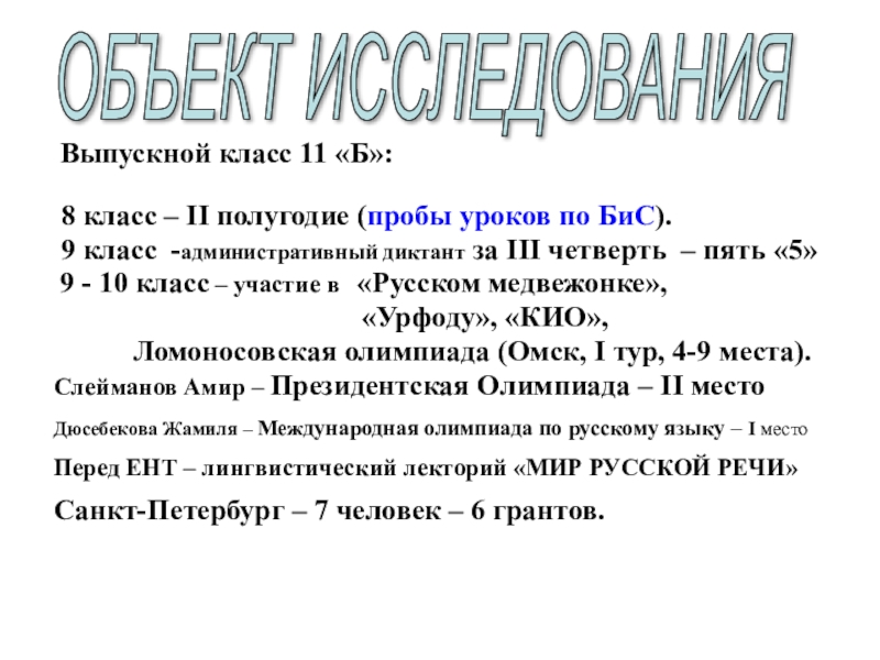 ОБЪЕКТ ИССЛЕДОВАНИЯ