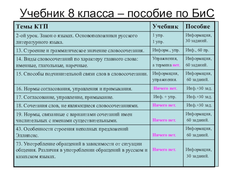 1.Наличие всех тем КТП.