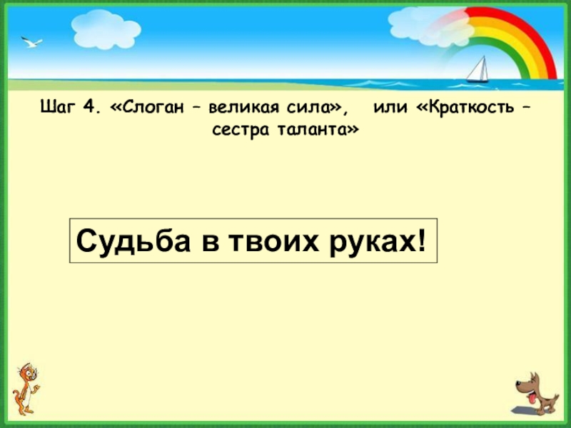 Слайд 7Шаг 4. «Слоган – великая сила», или «Краткость – сестра