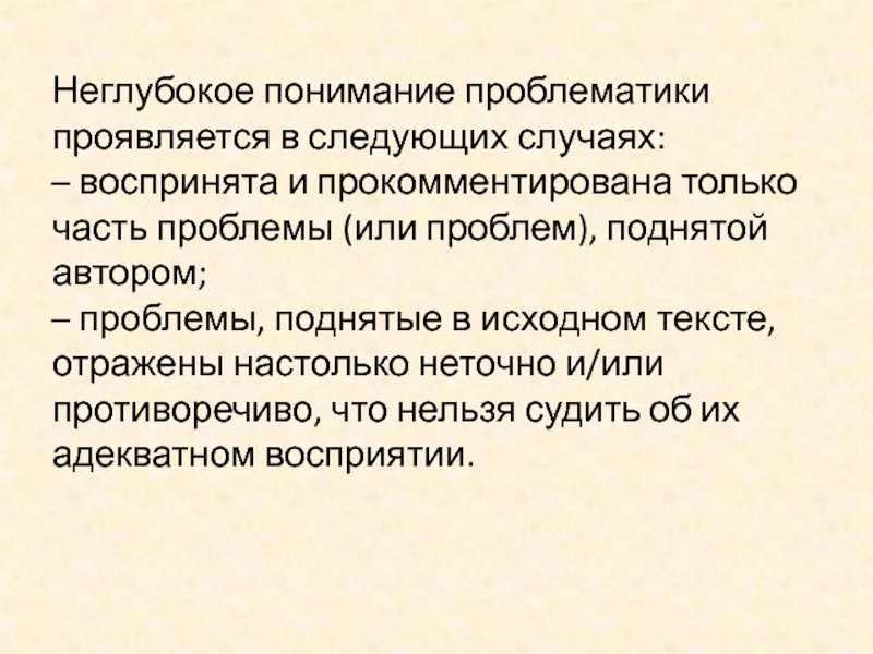 Слайд 32Неглубокое понимание проблематики проявляется в следующих случаях: