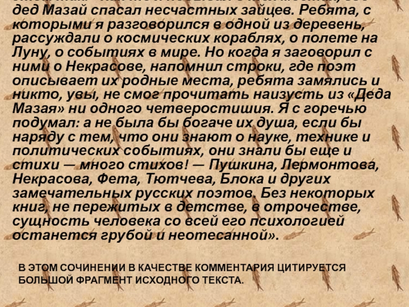 Слайд 40В этом сочинении в качестве комментария цитируется большой фрагмент исходного текста.