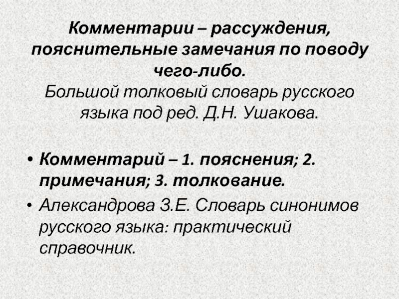 Слайд 2Комментарии – рассуждения, пояснительные замечания по поводу чего-либо.