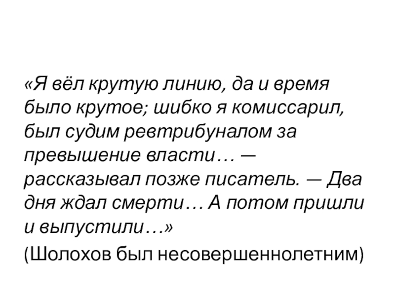 Слайд 9«Я вёл крутую линию, да и время было крутое; шибко я