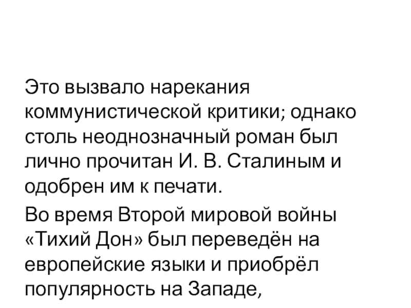 Слайд 13Это вызвало нарекания коммунистической критики; однако столь неоднозначный роман был лично