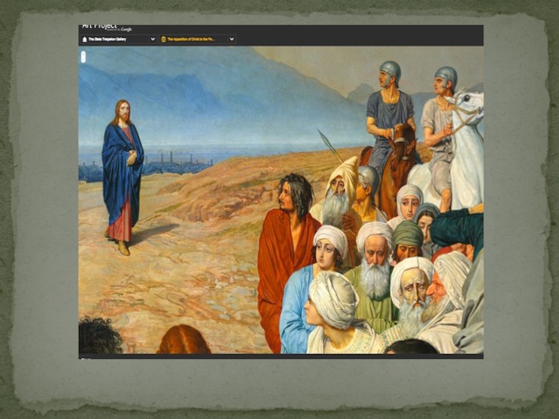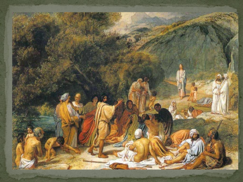 Слайд 7 Сюжет картины основывается на третьей главе Евангелия от Матфея. Замысел большого