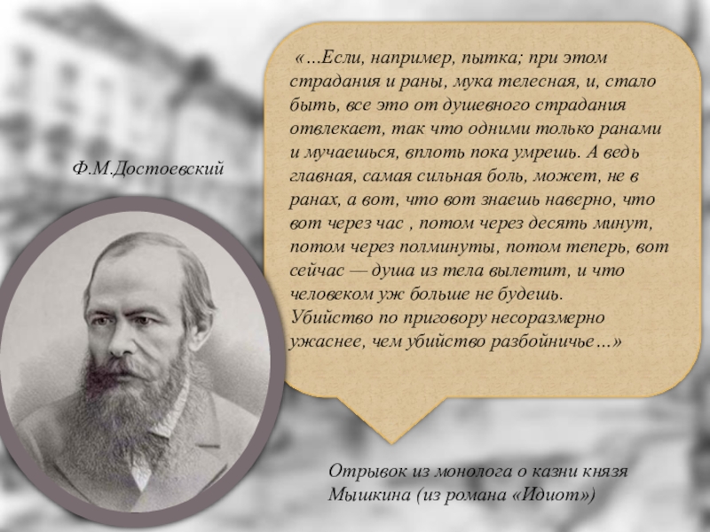 Отрывок из монолога о казни князя Мышкина (из романа «Идиот»)