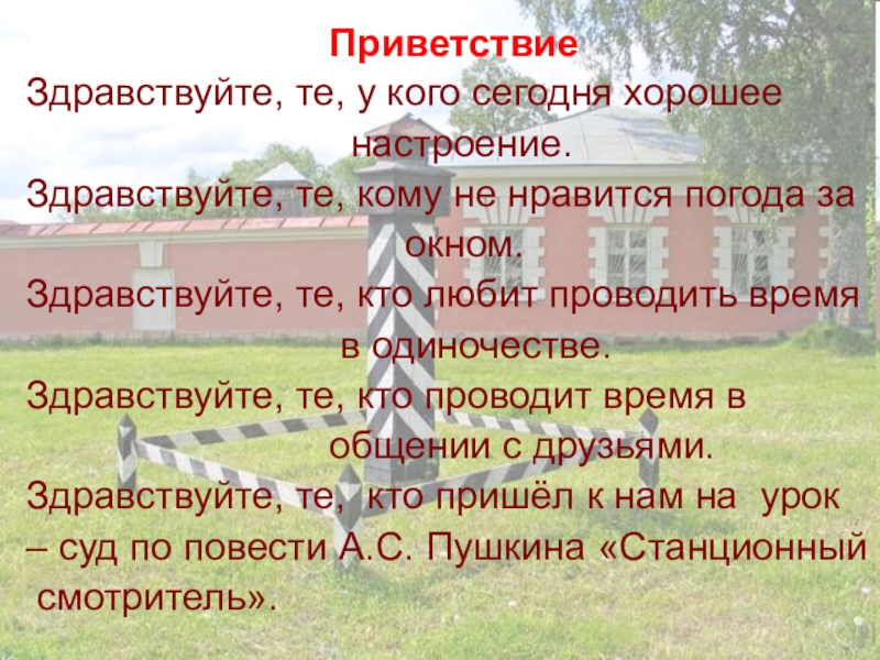 Слайд 2Урок – суд по повести А.С. Пушкина «Станционный смотритель»