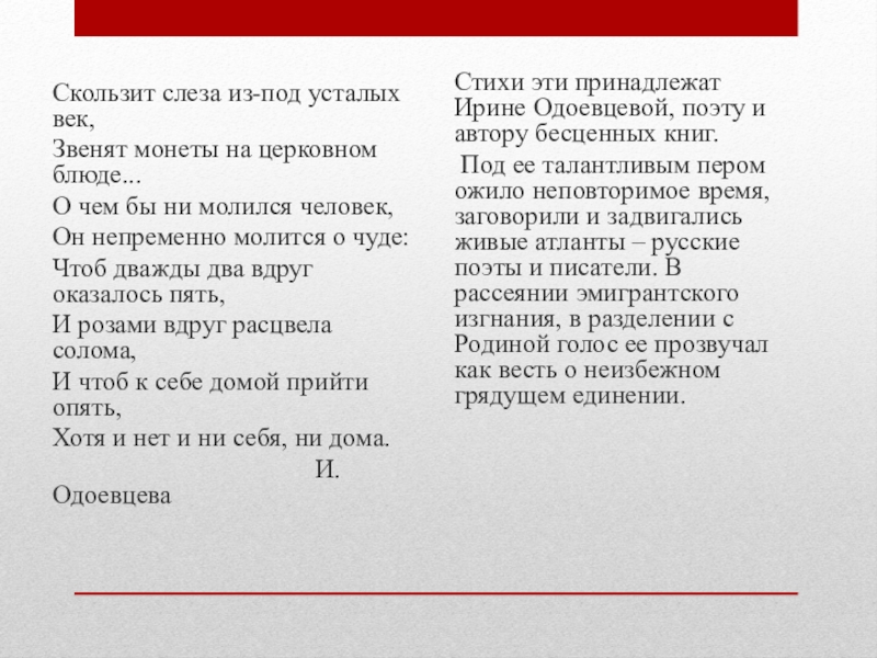 Стихи эти принадлежат Ирине Одоевцевой, поэту и автору бесценных книг.