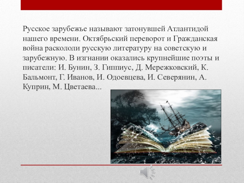 Под ее талантливым пером ожило неповторимое время, заговорили и задвигались живые атланты – русские поэты и писатели. В рассеянии эмигрантского изгнания, в разделении с Родиной голос ее прозвучал как весть о неизбежном грядущем единении.