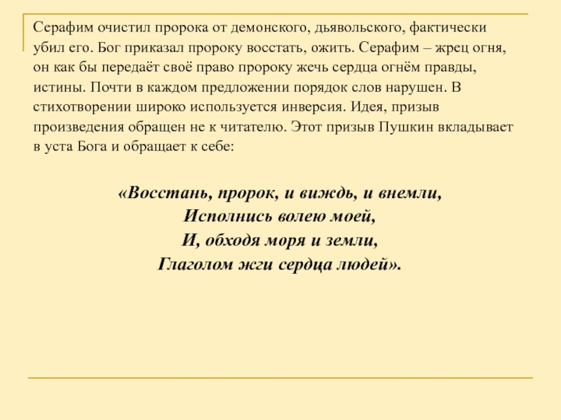 Этими словами поэт выражает момент, когда он внял, понял, осознал, увидел