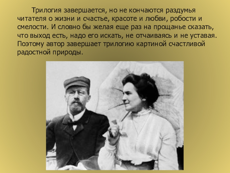 Слайд 26 Трилогия завершается, но не кончаются раздумья читателя о жизни и счастье,