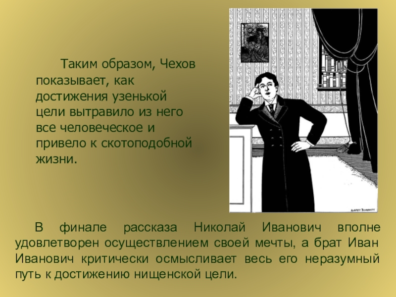 Слайд 19 Таким образом, Чехов показывает, как достижения узенькой цели вытравило из него