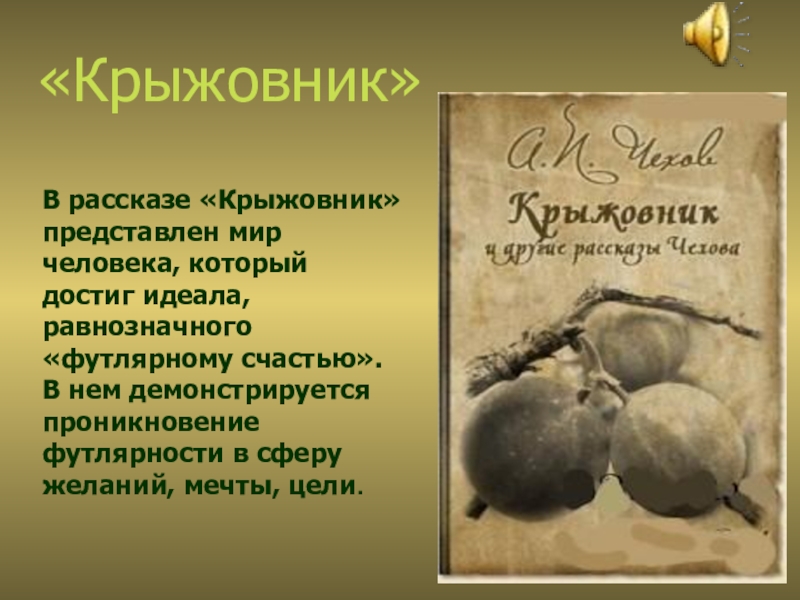 В рассказе «Крыжовник» представлен мир человека, который достиг идеала, равнозначного «футлярному