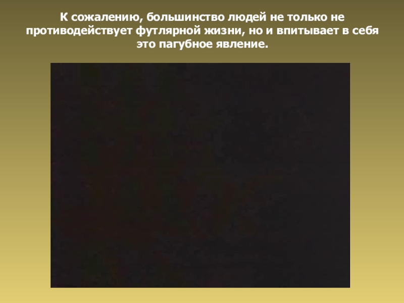 Слайд 13К сожалению, большинство людей не только не противодействует футлярной жизни, но