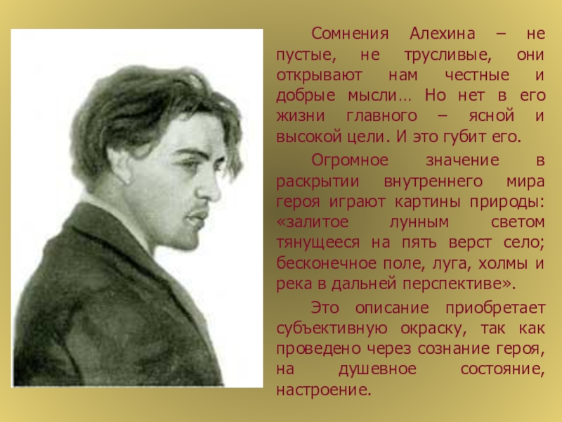Слайд 25 Сомнения Алехина – не пустые, не трусливые, они открывают нам честные
