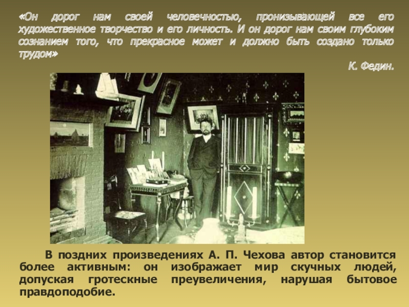 Слайд 3 В поздних произведениях А. П. Чехова автор становится более активным: он