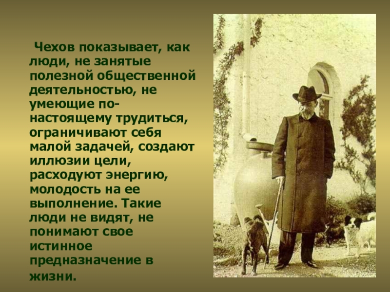 Слайд 16 Чехов показывает, как люди, не занятые полезной общественной деятельностью, не умеющие
