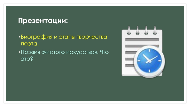 Это сайт презентаций, где можно хранить и обмениваться своими презентациями, докладами, проектами, шаблонами в формате PowerPoint с другими пользователями. Мы помогаем школьникам, студентам, учителям, преподавателям хранить и обмениваться учебными материалами.