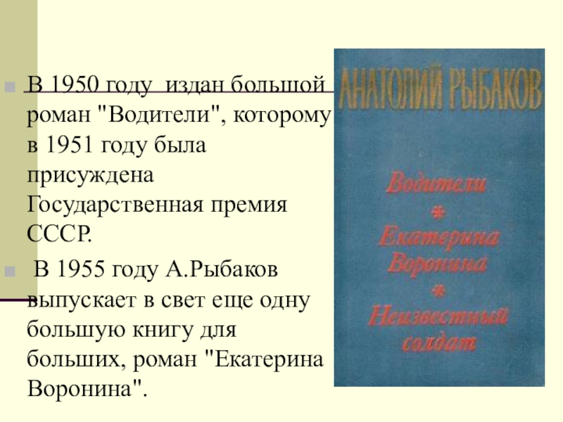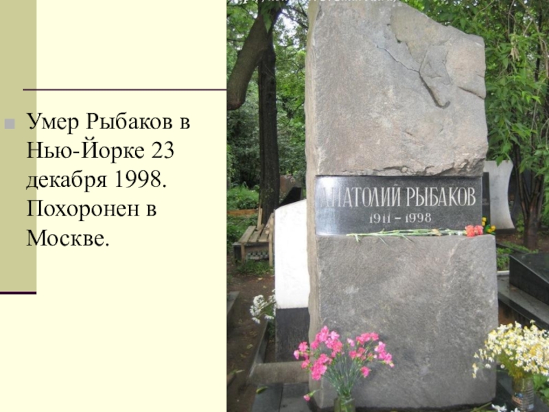 Анатолий Рыбаков - последний революционный романтик советской эпохи.