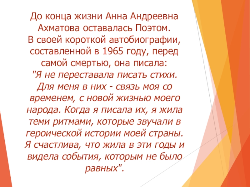 Слайд 19До конца жизни Анна Андреевна Ахматова оставалась Поэтом.