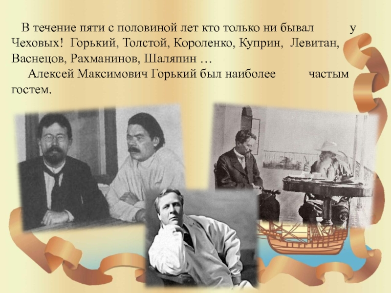 бывал у Чеховых! Горький, Толстой, Короленко, Куприн, Левитан, Васнецов, Рахманинов, Шаляпин …