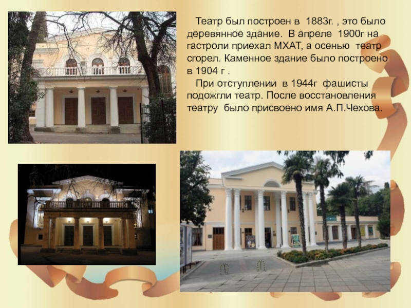 Слайд 13 Театр был построен в 1883г. , это было деревянное