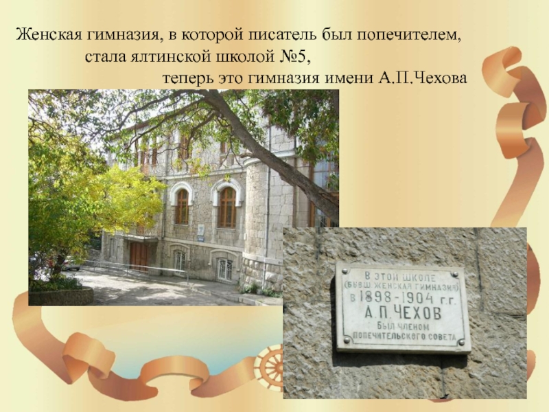 Слайд 16Женская гимназия, в которой писатель был попечителем,