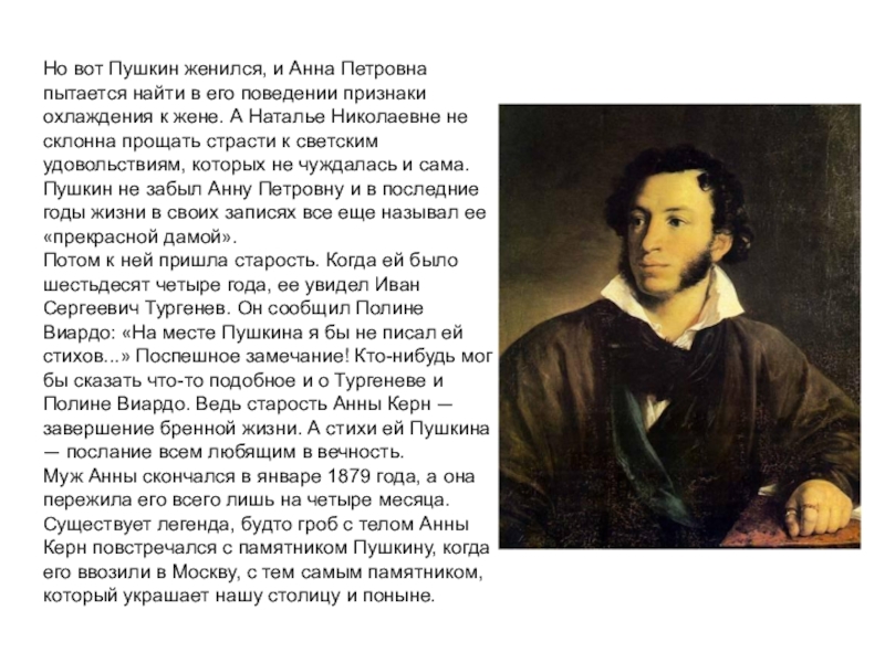 Слайд 16Но вот Пушкин женился, и Анна Петровна пытается найти в его