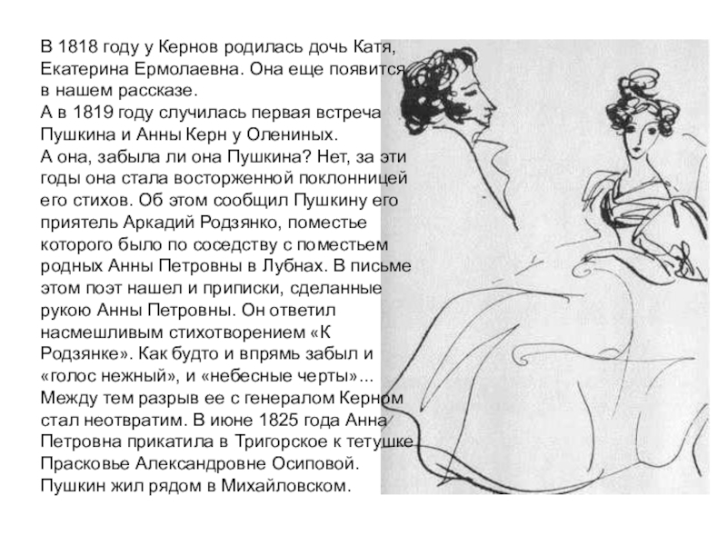 Слайд 7В 1818 году у Кернов родилась дочь Катя, Екатерина Ермолаевна. Она